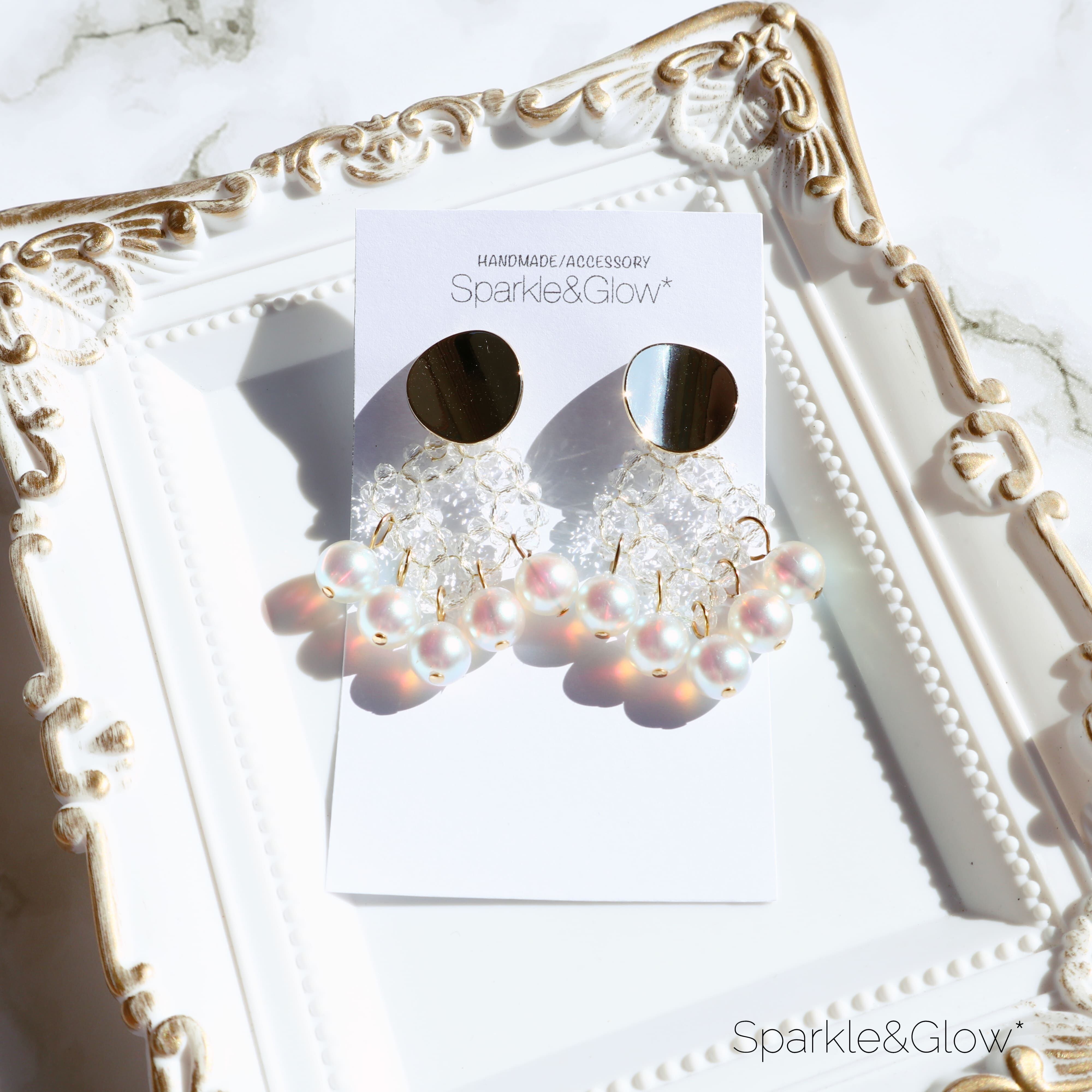 パール グラデーション オーロラ ビーズ 編み パーツ ダイヤ ホワイト クリア ホワイト ゴールド ピアス