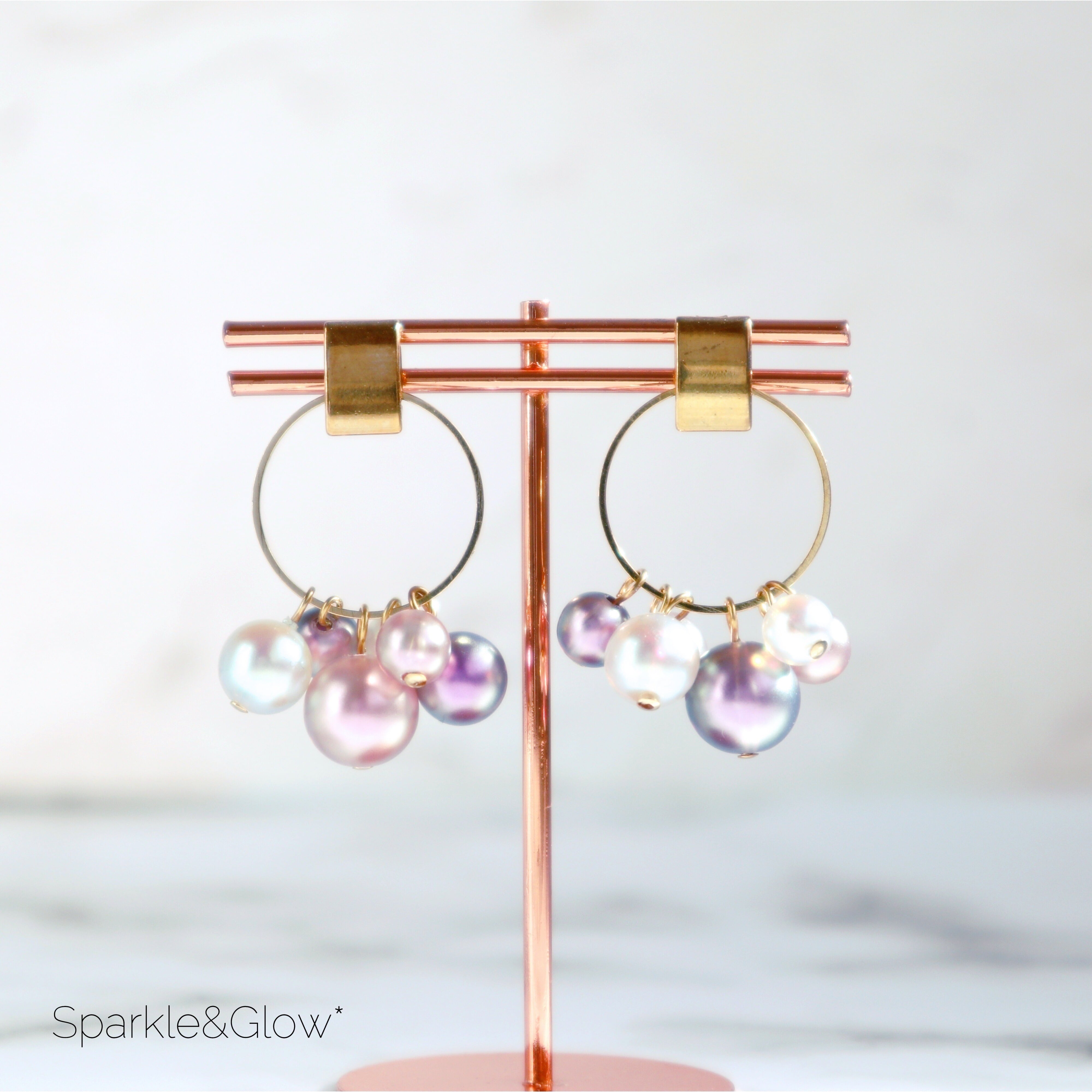 パール グラデーション ヒキモノリング スパークル ペール ピンク マゼンタ パープル ブルー グリーン ホワイト ゴールド ピアス