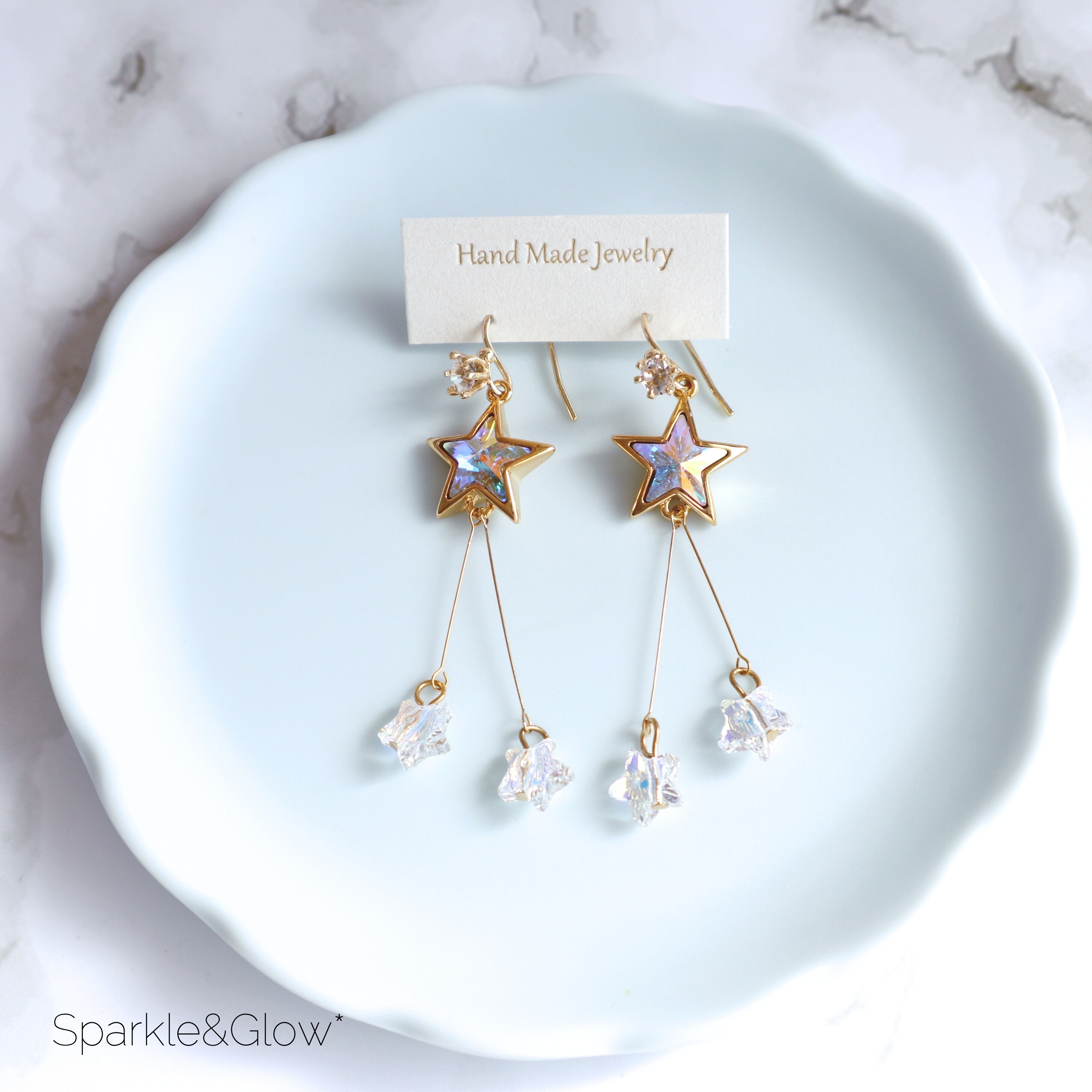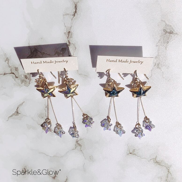 スワロフスキー 星 スター チャーム クリスタル オーロラ つなぎ パーツ インディゴ ブルー クリア ゴールド ピアス イヤリング