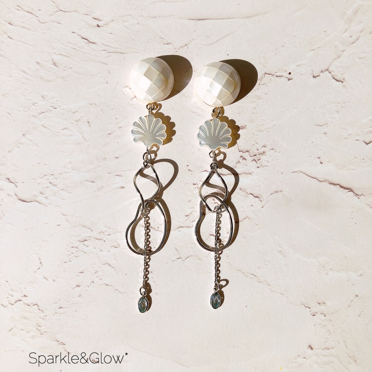 モザイク シェル パーツ シェイプ スイング パーツ 変形フープ キュービック ストーン ホワイト シルバー ブルー ピアス イヤリング