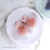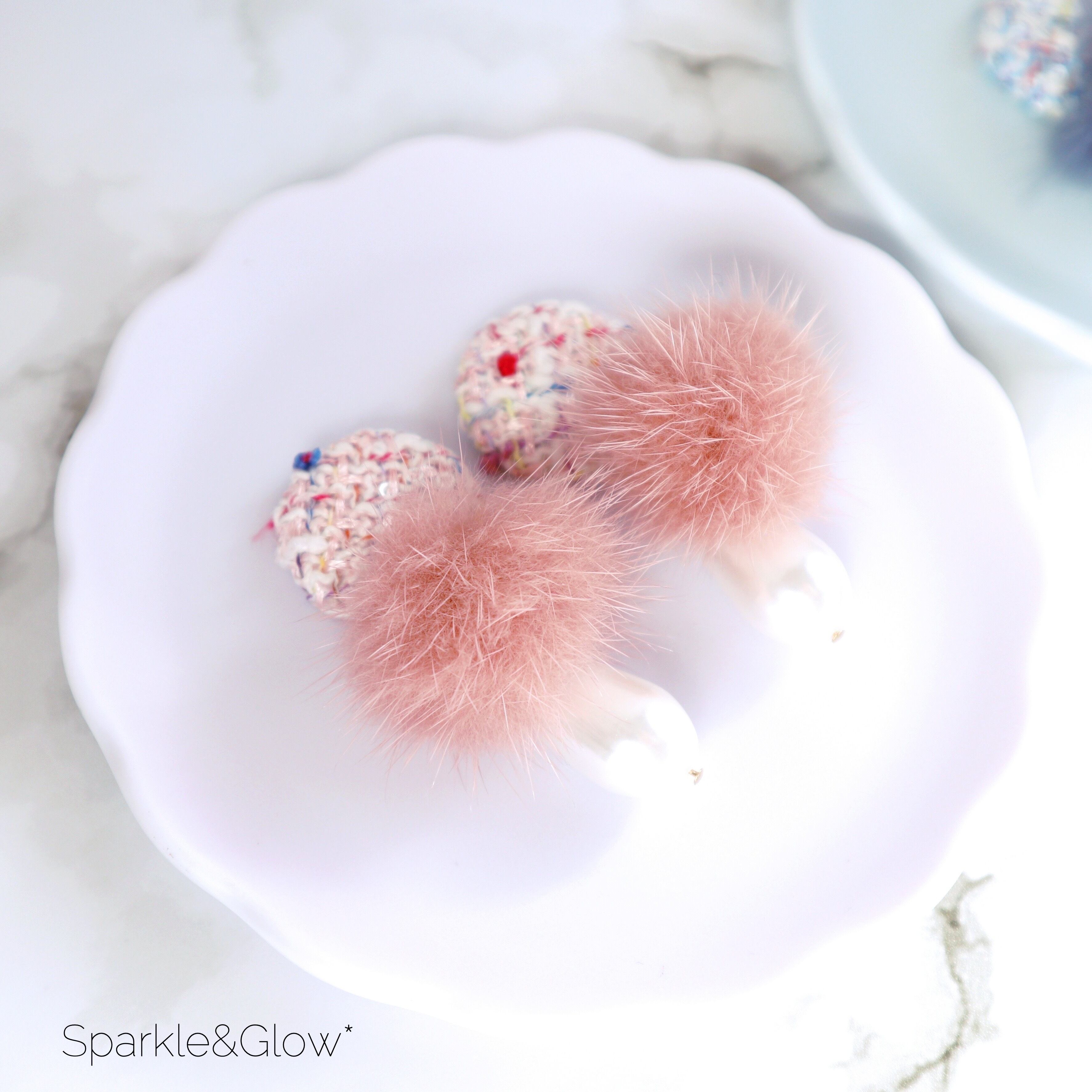 ツイード カボション パール ツユ しずく 樹脂 くるみパーツ ミンク ファー ピンク ブルー ピアス イヤリング