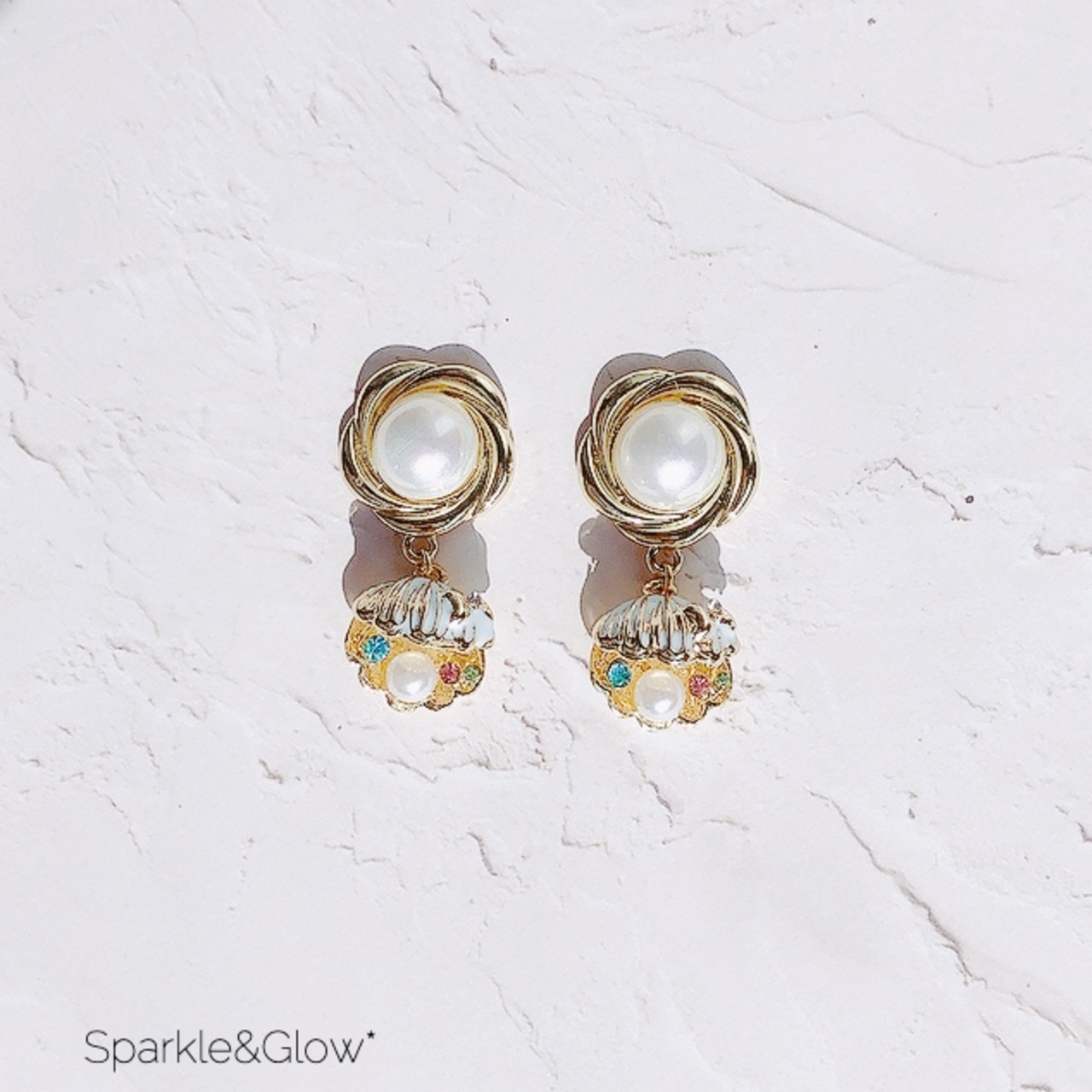 プリンセスをイメージした貝殻チャームとパールのピアスです。