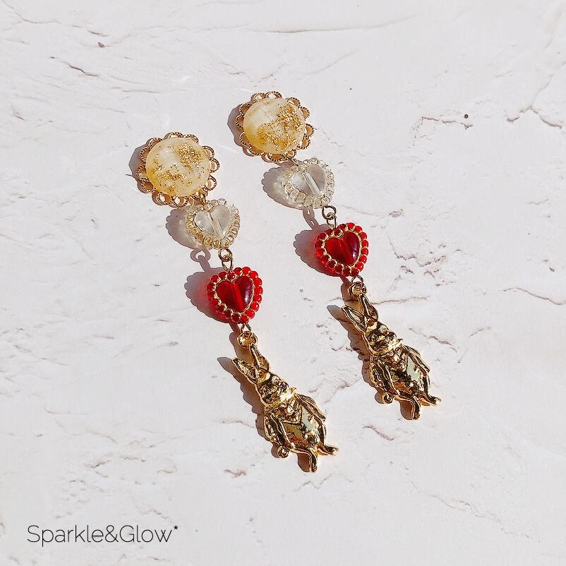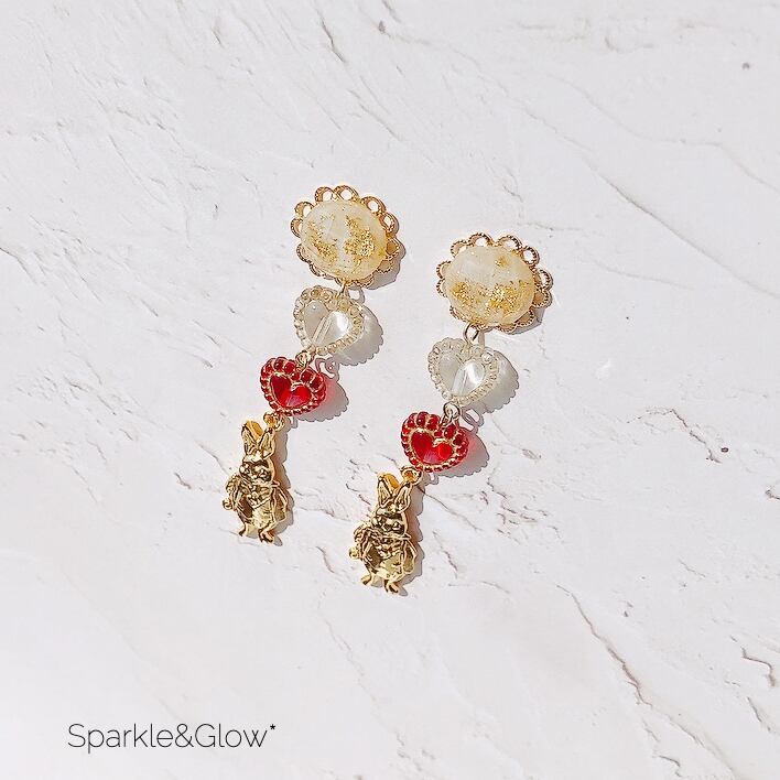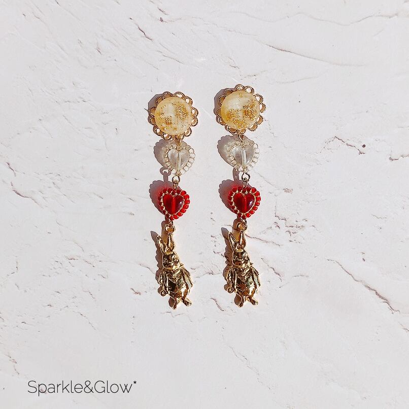 ハートと不思議の国の白うさぎピアス/イヤリング