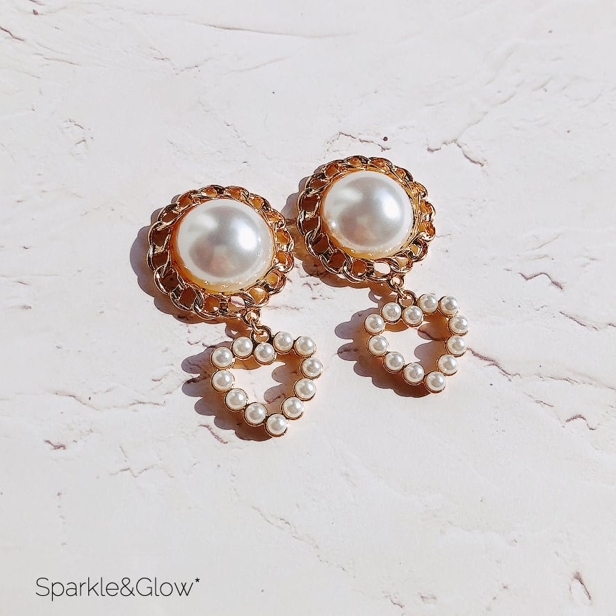 大きめなパールがコーデのアクセントになります。